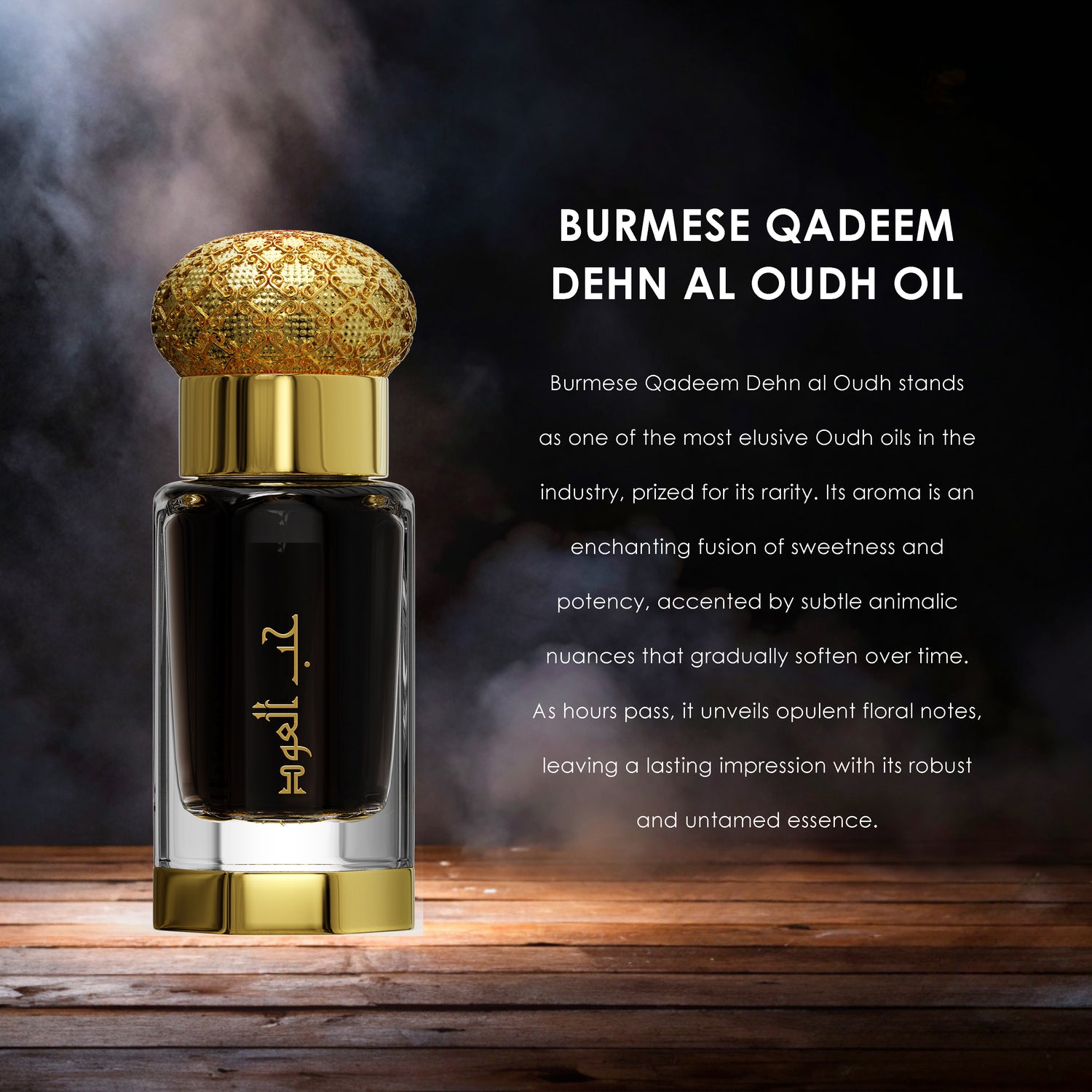 Burmese Qadeem Dehn AL Oudh Oil stands as one of the most elusive Oudh oils in the industry, prized for it rarity. Its aroma is an enchanting fusion of sweetness and potency.